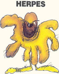Herpes is caused by a virus. Signs are small, painful blisters, headache, fever, malaise, burning or stinging during urination, tingling, itching, burning or painful sores near the sex organs, anus, or mouth. The blisters go away, but may come back at any time. Herpes can be controlled, but there is no cure.